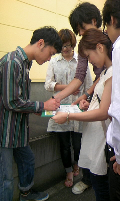 描いて、ぺたりと張り終わった後は、記念写真をパチリっ